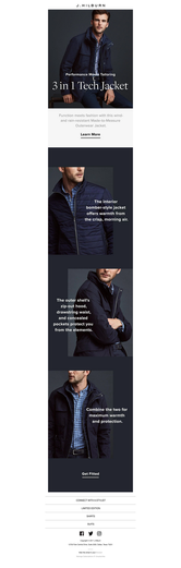 Holistic marketing campaign to promote the seasonal 3 in 1 Tech Jacket. Finalist in Email Monks' 2017 "The Best Email Design Hunt" Contest. Click on each medium to enlarge.